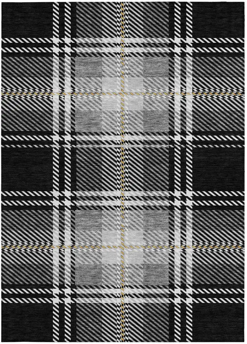 Black Gold And Gray Plaid Washable Indoor Outdoor Area Rug