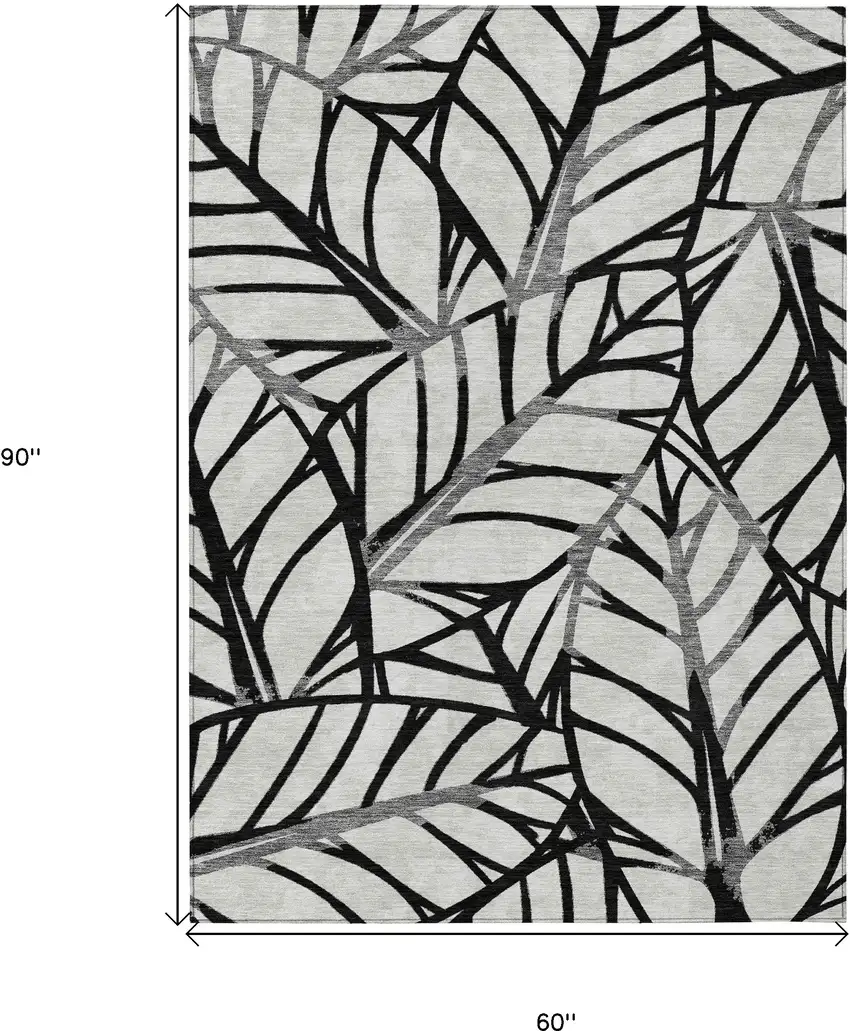 Set an inviting tone in your space with this 5-foot x 8-foot black gray and beige floral washable indoor outdoor area rug. This rectangle shaped rug features a floral design that will work well both indoors or out. A classic shape marries with good looking design for your living room, hall, bedroom, porch, patio, or poolside. The coloration of this rug infuses an updated and modern vibe into your space. Ideal for outdoor spaces or high traffic areas with kids and pets, this rug is made from heavy duty polyester that is stain resistant to help repel water, dirt, and stains. Makes a great way to dress up your patio, porch, or poolside, but also works well as a durable and easy to maintain option in the kitchen, family room, or mudroom. 60-inch h x 90-inch w x 0.19-inch d.