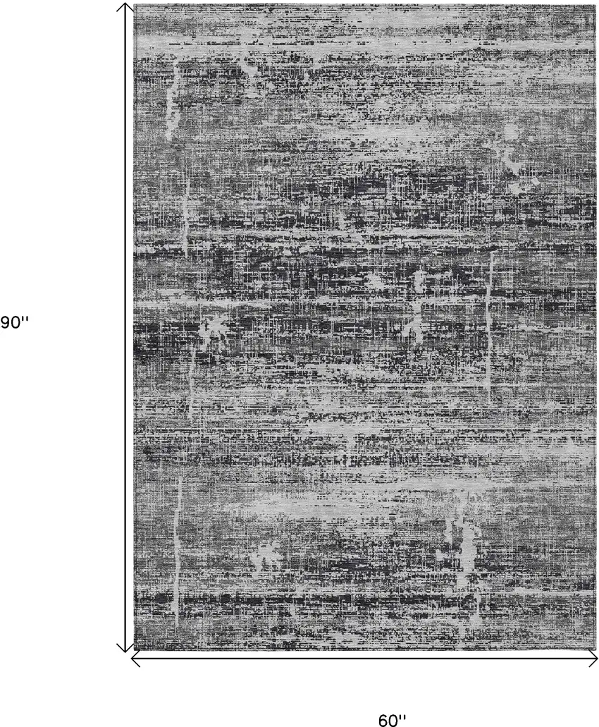 Add some artistry to your room with this 5-foot x 8-foot black gray and charcoal abstract washable indoor outdoor area rug. This rectangle shaped rug features a abstract design that will work well both indoors or out. A classic shape marries with good looking design for your living room, hall, bedroom, porch, patio, or poolside. The coloration of this rug infuses an updated and modern vibe into your space. Ideal for outdoor spaces or high traffic areas with kids and pets, this rug is made from heavy duty polyester that is stain resistant to help repel water, dirt, and stains. Makes a great way to dress up your patio, porch, or poolside, but also works well as a durable and easy to maintain option in the kitchen, family room, or mudroom. 60-inch h x 90-inch w x 0.19-inch d.