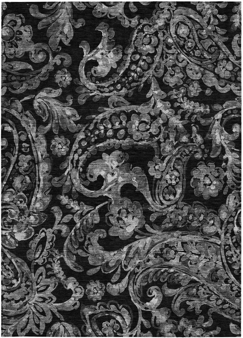 Black Gray And Charcoal Paisley Washable Indoor Outdoor Area Rug