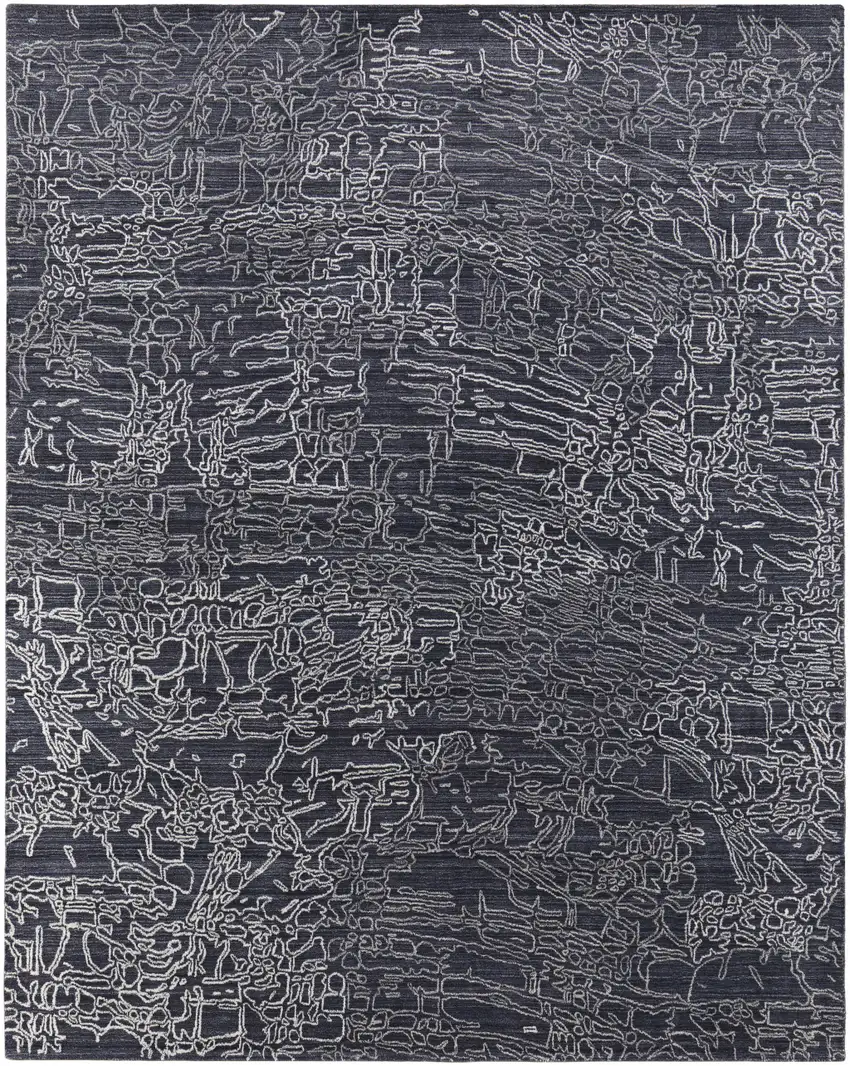 Black Gray and Ivory Abstract Hand Woven Area Rug