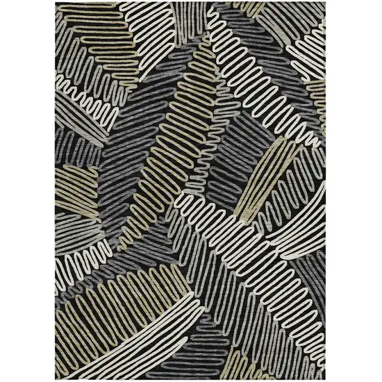 Black Gray And Ivory Floral Washable Indoor Outdoor Area Rug