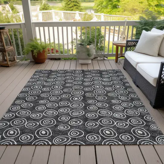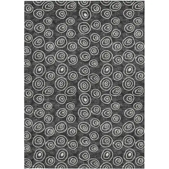 Set an inviting tone in your space with this 9-foot x 12-foot black gray and ivory geometric washable indoor outdoor area rug. This rectangle shaped rug features a geometric design that will work well both indoors or out. A classic shape marries with good looking design for your living room, hall, bedroom, porch, patio, or poolside. The coloration of this rug infuses an updated and modern vibe into your space. Ideal for outdoor spaces or high traffic areas with kids and pets, this rug is made from heavy duty polyester that is stain resistant to help repel water, dirt, and stains. Versatile in use, durable, and easy to maintain, this rug is an ideal solution to add a decorative and inviting touch to your indoor or outdoor space. 108-inch h x 144-inch w x 0.19-inch d.