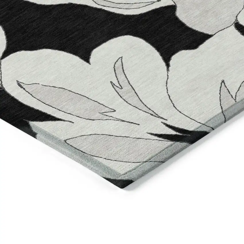 Add great coloration and comfortable texture to your space with this 9-foot x 12-foot black gray and silver floral washable indoor outdoor area rug. This rectangle shaped rug features a floral design that will work well both indoors or out. A classic shape marries with good looking design for your living room, hall, bedroom, porch, patio, or poolside. The coloration of this rug infuses an updated and modern vibe into your space. Ideal for outdoor spaces or high traffic areas with kids and pets, this rug is made from heavy duty polyester that is stain resistant to help repel water, dirt, and stains. Makes a great way to dress up your patio, porch, or poolside, but also works well as a durable and easy to maintain option in the kitchen, family room, or mudroom. 108-inch h x 144-inch w x 0.19-inch d.