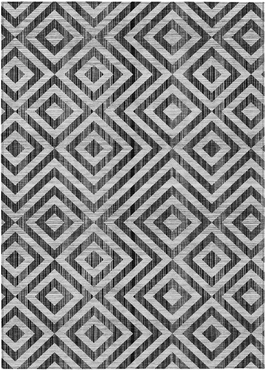 This 9-foot x 12-foot black gray and silver geometric washable indoor outdoor area rug, is a great way to add warmth to a room. This rectangle shaped rug features a geometric design that will work well both indoors or out. A classic shape marries with good looking design for your living room, hall, bedroom, porch, patio, or poolside. The coloration of this rug infuses an updated and modern vibe into your space. Ideal for outdoor spaces or high traffic areas with kids and pets, this rug is made from heavy duty polyester that is stain resistant to help repel water, dirt, and stains. Versatile in use, durable, and easy to maintain, this rug is an ideal solution to add a decorative and inviting touch to your indoor or outdoor space. 108-inch h x 144-inch w x 0.19-inch d.