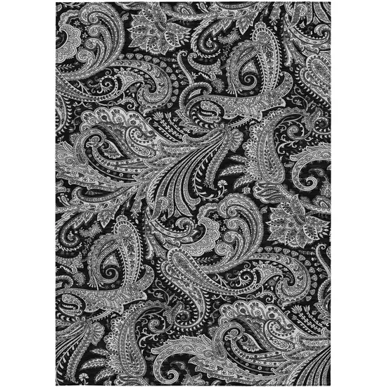 Black Gray And White Paisley Washable Indoor Outdoor Area Rug