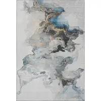 Black Ivory And Gray Abstract Washable Area Rug With UV Protection