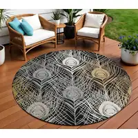 Black Ivory And Green Botanical Leaves Washable Indoor Outdoor Area Rug