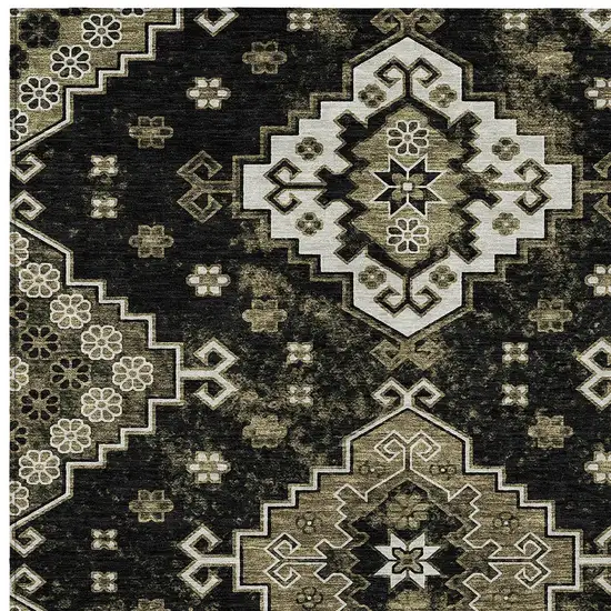 This 5-foot x 8-foot black ivory and taupe medallion washable indoor outdoor area rug, is a great way to add warmth to a room. This rectangle shaped rug features a medallion design that will work well both indoors or out. A classic shape marries with good looking design for your living room, hall, bedroom, porch, patio, or poolside. The coloration of this rug infuses an updated and modern vibe into your space. Ideal for outdoor spaces or high traffic areas with kids and pets, this rug is made from heavy duty polyester that is stain resistant to help repel water, dirt, and stains. Makes a great way to dress up your patio, porch, or poolside, but also works well as a durable and easy to maintain option in the kitchen, family room, or mudroom. 60-inch h x 90-inch w x 0.19-inch d.