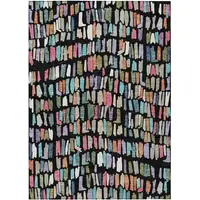 Black Ivory And Wheat Geometric Washable Indoor Outdoor Area Rug