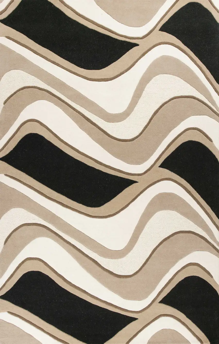 Add a dash of elegance to any room in your home with this abstract waves wool area rug. Available in neutral tones of black or beige to flawlessly blend with your existing décor.