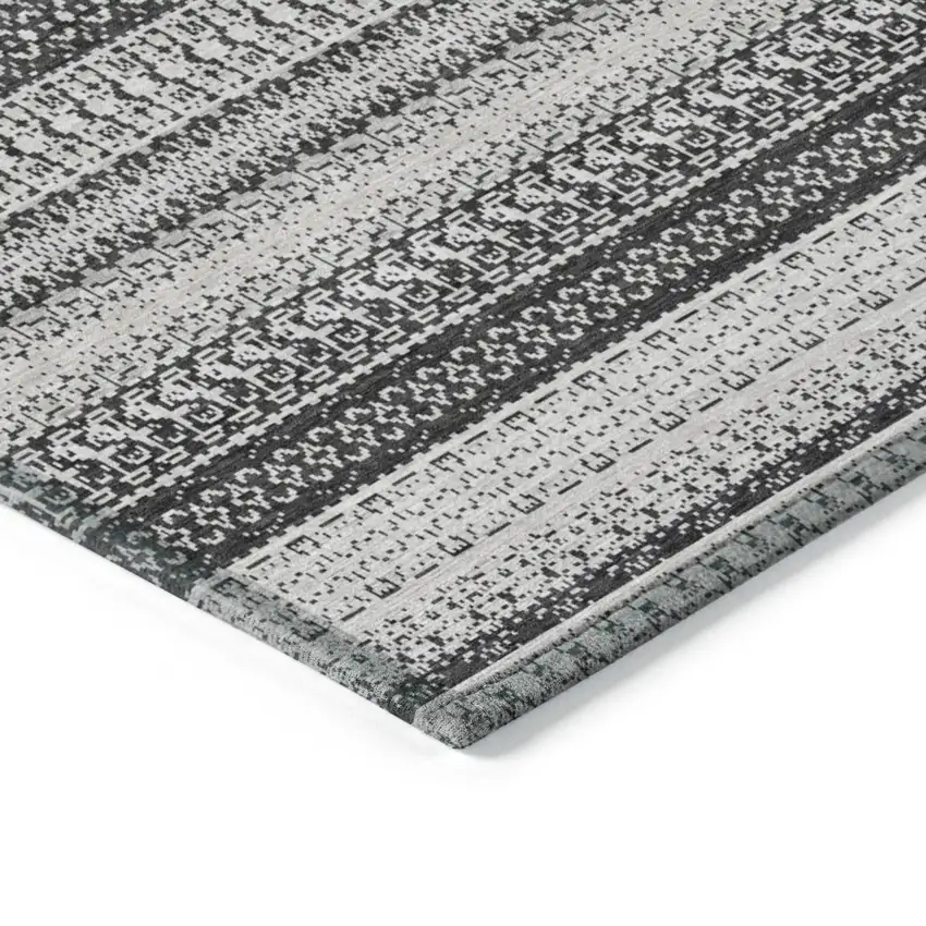 Black Round Striped Washable Non Skid Indoor Outdoor Area Rug