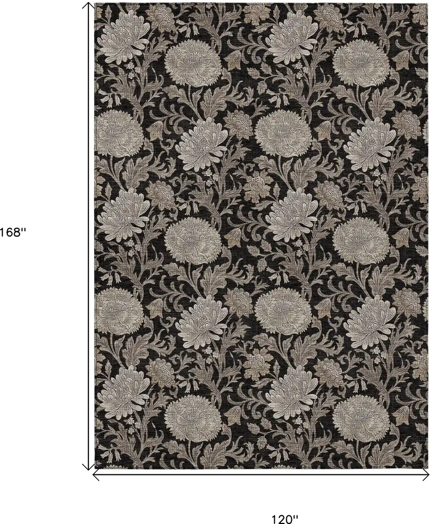 This 10-foot x 14-foot black taupe and beige floral washable indoor outdoor area rug, is a great way to add warmth to a room. This rectangle shaped rug features a floral design that will work well both indoors or out. A classic shape marries with good looking design for your living room, hall, bedroom, porch, patio, or poolside. The coloration of this rug infuses an updated and modern vibe into your space. Ideal for outdoor spaces or high traffic areas with kids and pets, this rug is made from heavy duty polyester that is stain resistant to help repel water, dirt, and stains. Versatile in use, durable, and easy to maintain, this rug is an ideal solution to add a decorative and inviting touch to your indoor or outdoor space. 120-inch h x 168-inch w x 0.19-inch d.