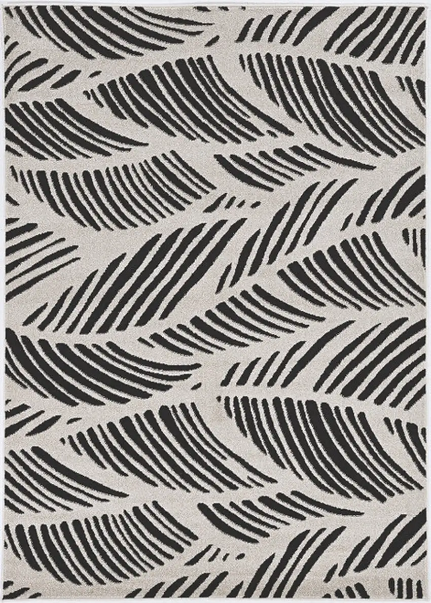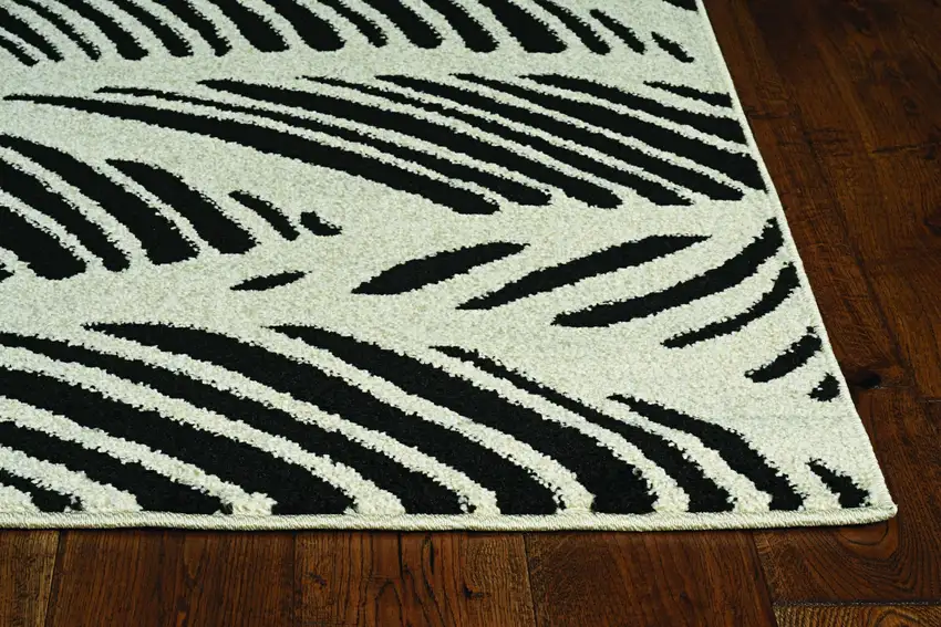 This versatile accent rug, adorned with a tropical palm leaf pattern, is an exquisite addition to your indoor décor. Its black and white design ensures it can easily blend with any home interior style.