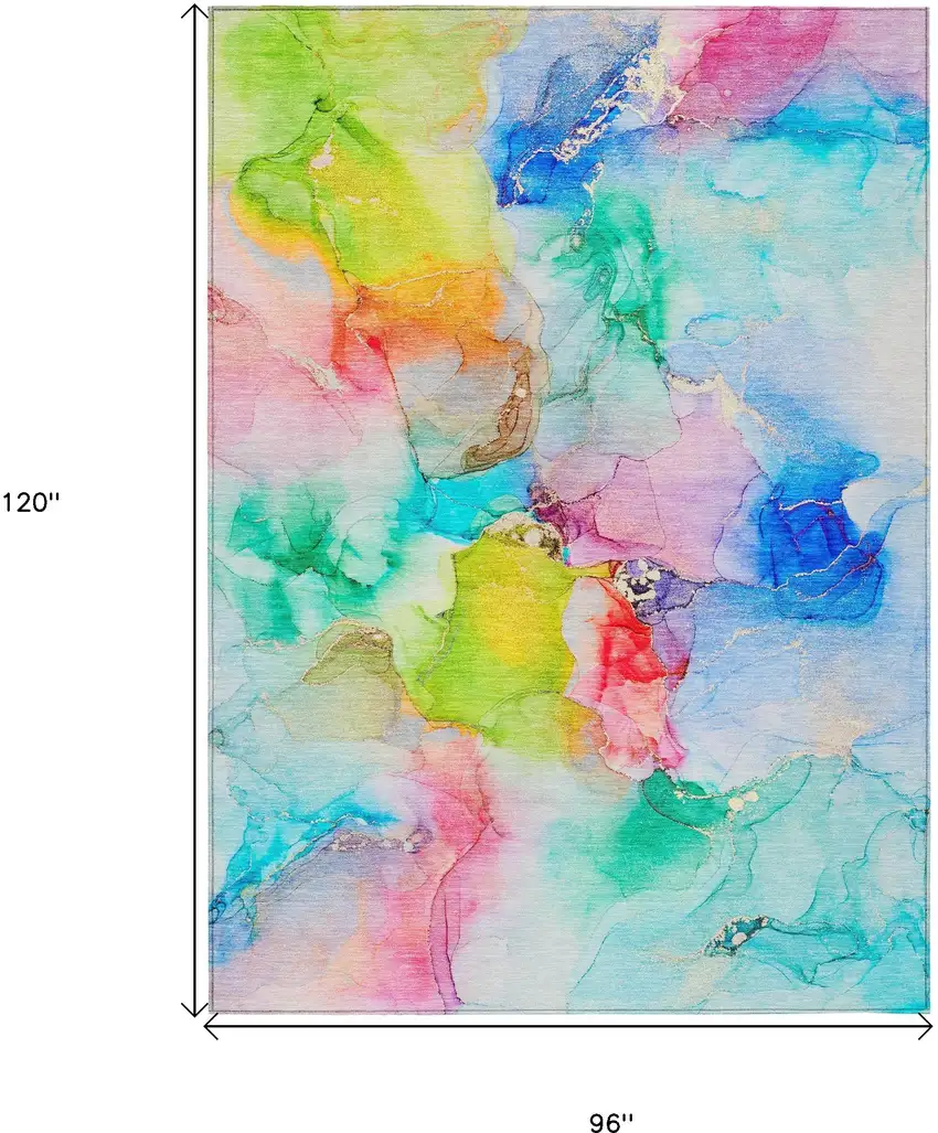 Blue Abstract Washable Non Skid Indoor Outdoor Area Rug