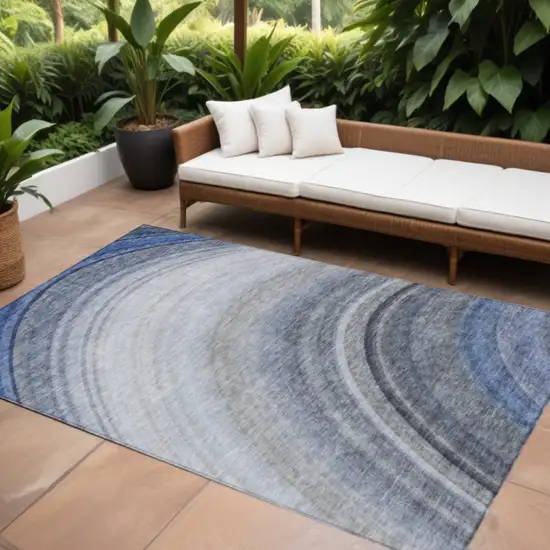 This 9-foot x 12-foot blue abstract washable non skid indoor outdoor area rug, is a great way to add warmth to a room. This rectangle shaped rug features a abstract design that will work well both indoors or out. A classic shape marries with good looking design for your living room, hall, bedroom, porch, patio, or poolside. Ideal for outdoor spaces or high traffic areas with kids and pets, this rug is made from heavy duty polyester that is stain resistant to help repel water, dirt, and stains. Makes a great way to dress up your patio, porch, or poolside, but also works well as a durable and easy to maintain option in the kitchen, family room, or mudroom. 108-inch h x 144-inch w x 0.19-inch d
