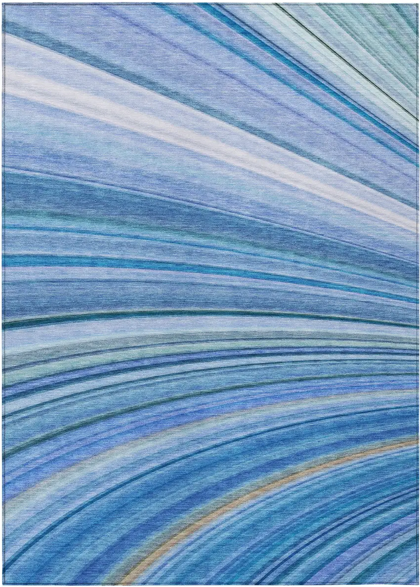 Blue Abstract Washable Non Skid Indoor Outdoor Area Rug