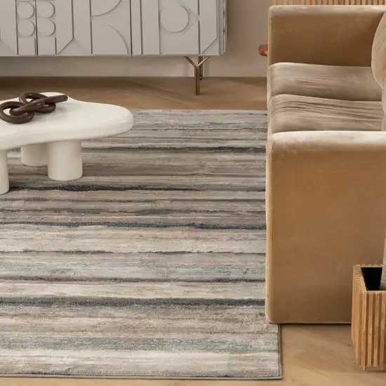 The rug features an edgy beige and blue stripe design giving it a distressed yet contemporary look. Perfect for adding some aesthetic appeal to your living spaces.