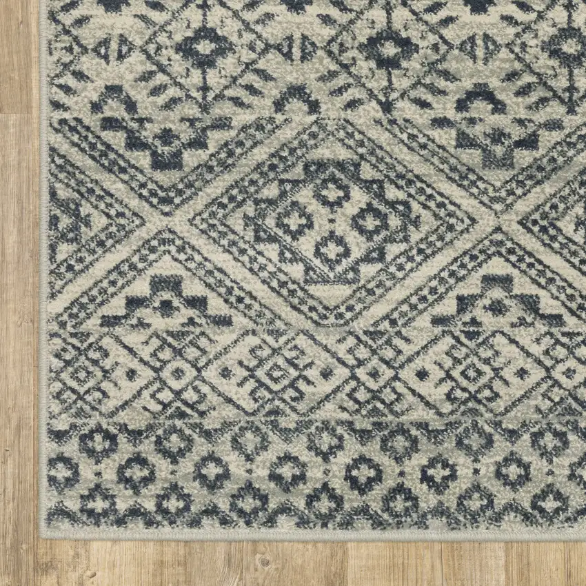 Blue And Beige Geometric Power Loom Stain Resistant Area Rug
