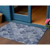 Blue And Beige Geometric Washable Indoor Outdoor Area Rug