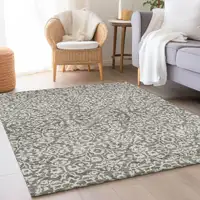 Blue And Beige Jute Geometric Hand Woven Square Rug