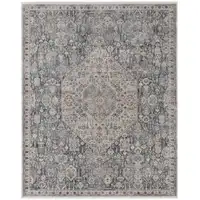 Blue and Brown Oriental Power Loom Distressed Washable Non Skid Area Rug