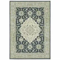 Blue And Brown Oriental Power Loom Stain Resistant Area Rug