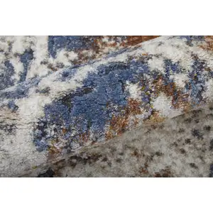 Blue And Brown Oriental Power Loom Stain Resistant Runner Rug