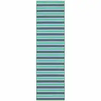 Blue And Brown Striped Washable Indoor Outdoor Area Rug