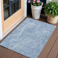 Blue And Charcoal Tribal Washable Indoor Outdoor Area Rug