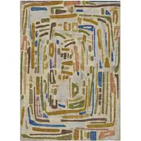 Blue And Copper Abstract Washable Indoor Outdoor Area Rug