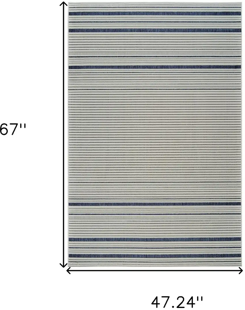 Blue and Cream Striped Distressed Indoor Outdoor Area Rug