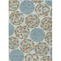 Blue And Denim Blue Geometric Washable Indoor Outdoor Area Rug