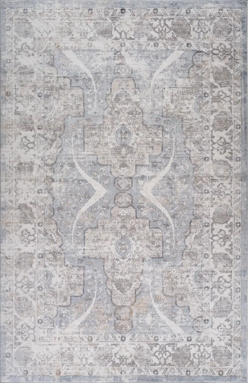 Blue and Gray Abstract Distressed Area Rug