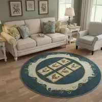 Blue And Gray Damask Washable Area Rug With UV Protection