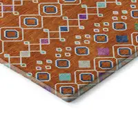 Blue And Gray Geometric Washable Area Rug With UV Protection