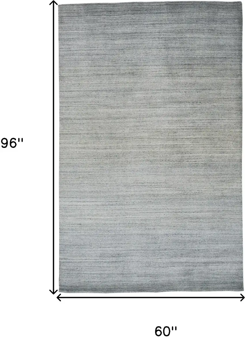 Delight in the care and detail of this handwoven area rug that blends blue and gray in a captivating ombre pattern. A rug that not only enhances your room but demonstrates keen craftsmanship.