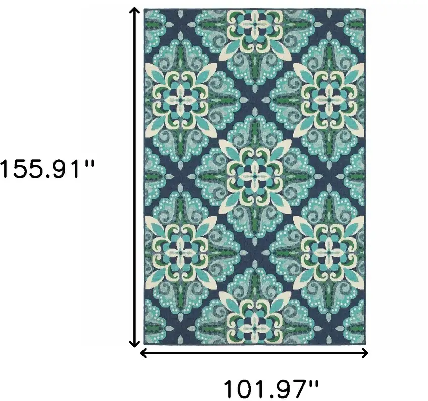 Embrace the versatility of this indoor/outdoor rug by seamlessly transitioning it to your patio or deck. Whether you're hosting a summer barbecue or enjoying a peaceful evening under the stars, the Blue and Green Floral Indoor/Outdoor Area Rug will bring a touch of elegance to your outdoor living space. Its moisture-resistant construction ensures that you won't have to worry about rain showers or accidental spills dampening your outdoor gatherings.