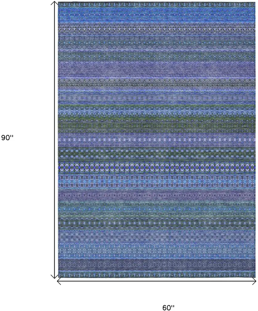 Blue and Green Striped Washable Non Skid Indoor Outdoor Area Rug