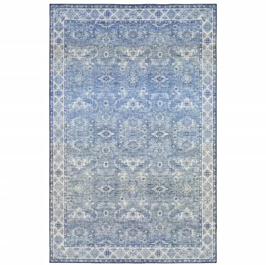 Blue And Grey Oriental Power Loom Stain Resistant Area Rug