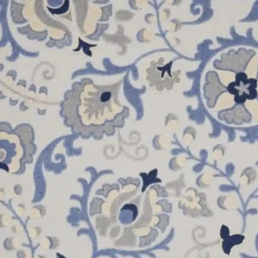 Blue And Grey Toile Non Skid Indoor Outdoor Area Rug