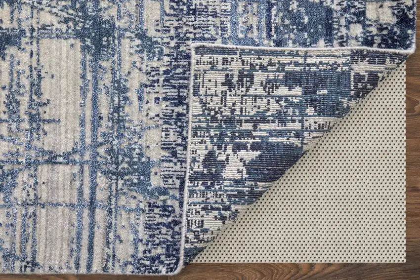 Blue and Ivory Abstract Hand Woven Worn Faded Area Rug