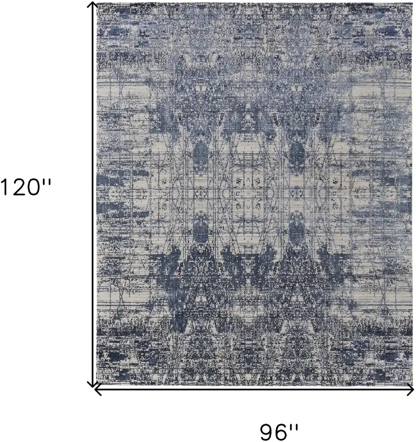 Add some artistry to your room with this 8-foot x 10-foot blue and ivory abstract hand woven worn faded area rug. This rectangle shaped rug features a abstract design in blue and ivory to give it visual interest. A classic shape marries with good looking design for your space crafted by skilled artisans, this hand woven rug is genuine and unique. No two will be exactly alike. Area rugs help to give warmth and sense of home to your space. 96-inch H x 120-inch W x 0.39-inch D