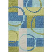 Blue and Ivory Abstract Power Loom Distressed Area Rug
