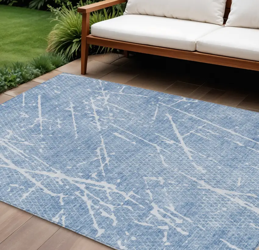 Set an inviting tone in your space with this 9-foot x 12-foot blue and ivory abstract washable indoor outdoor area rug. This rectangle shaped rug features a abstract design that will work well both indoors or out. A classic shape marries with good looking design for your living room, hall, bedroom, porch, patio, or poolside. Ideal for outdoor spaces or high traffic areas with kids and pets, this rug is made from heavy duty polyester that is stain resistant to help repel water, dirt, and stains. Makes a great way to dress up your patio, porch, or poolside, but also works well as a durable and easy to maintain option in the kitchen, family room, or mudroom. 108-inch h x 144-inch w x 0.19-inch d.