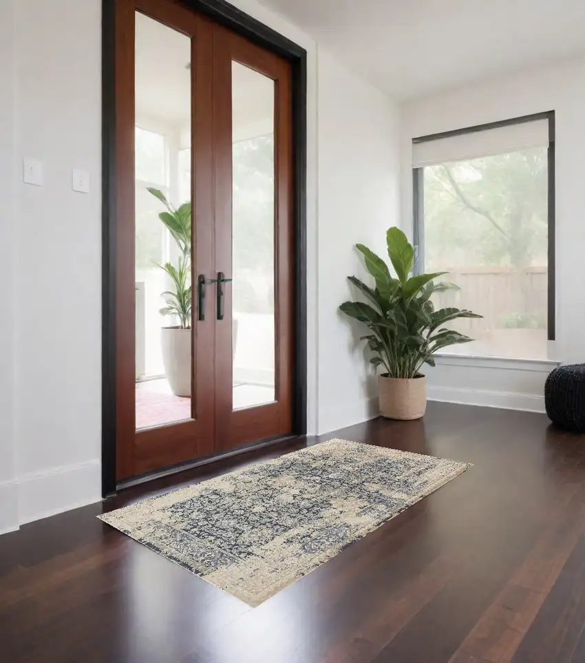 Blue and Ivory Floral Area Rug