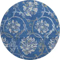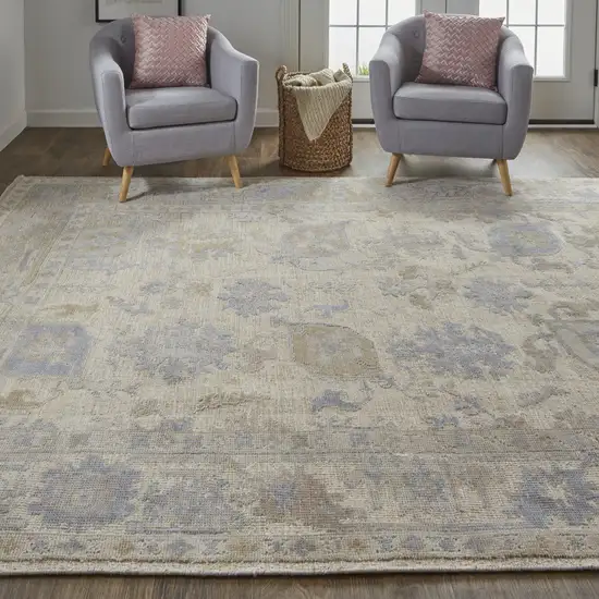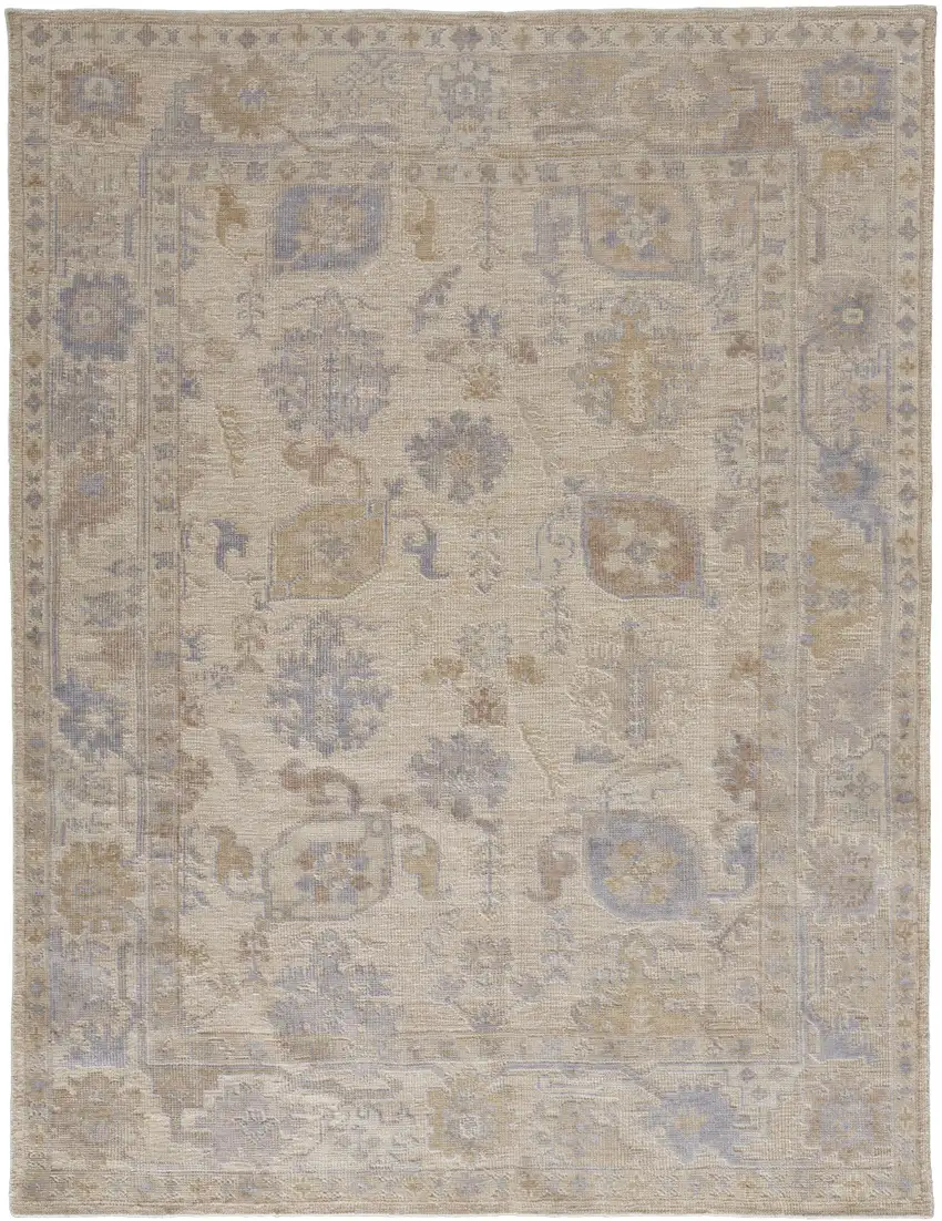 Blue and Ivory Floral Hand Knotted Area Rug