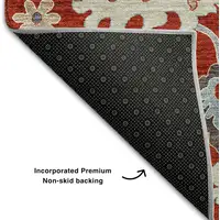 Blue And Ivory Floral Washable Area Rug With UV Protection