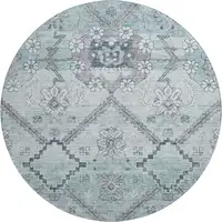 Blue And Ivory Floral Washable Area Rug With UV Protection