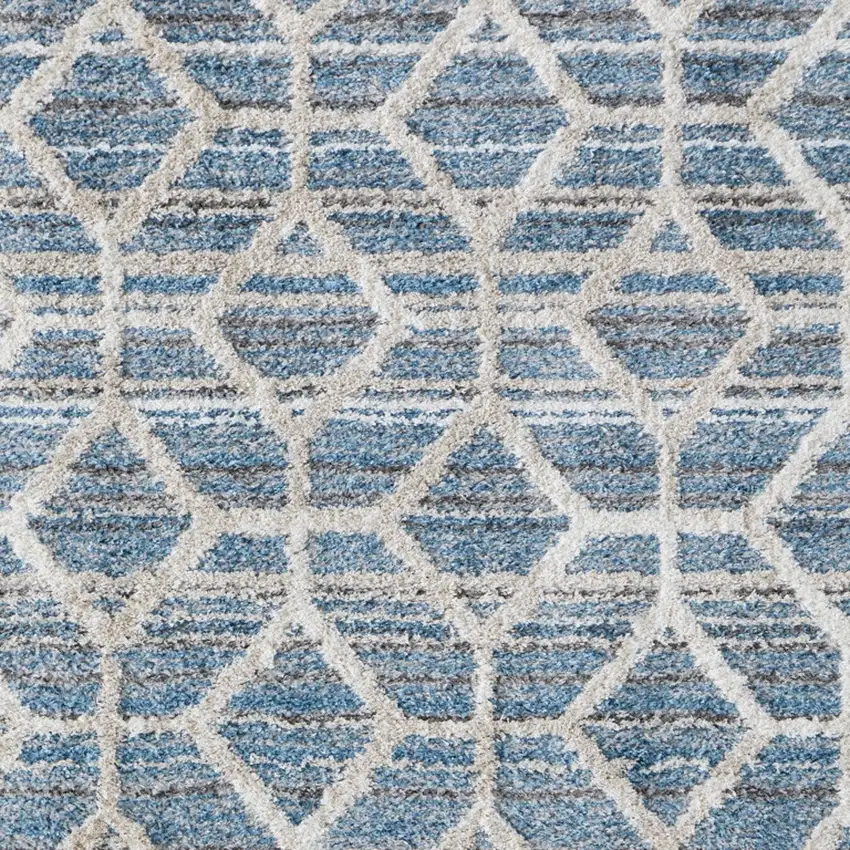 Blue And Ivory Geometric Power Loom Stain Resistant Area Rug